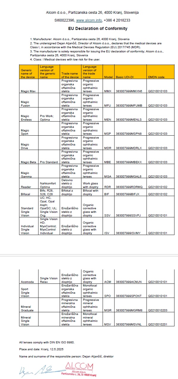 Jede Brille hat ein eigenes Zertifikat, das für andere Brillen nicht gültig ist. Die Gravuren auf dem Fassung und beiden GlAser belegen die Echtheit der Brille und die Einhaltung der Verordnung (EU) 2016/425.